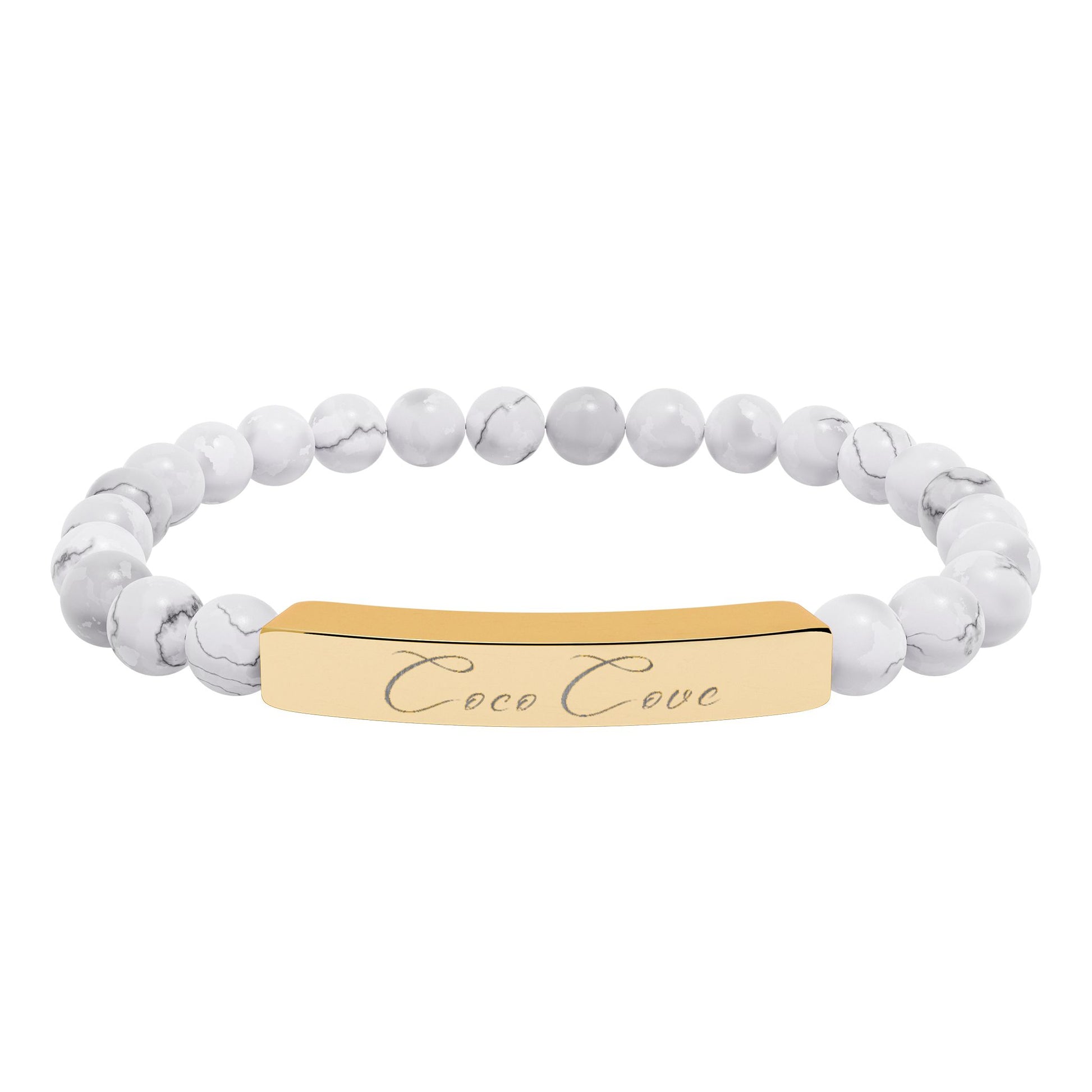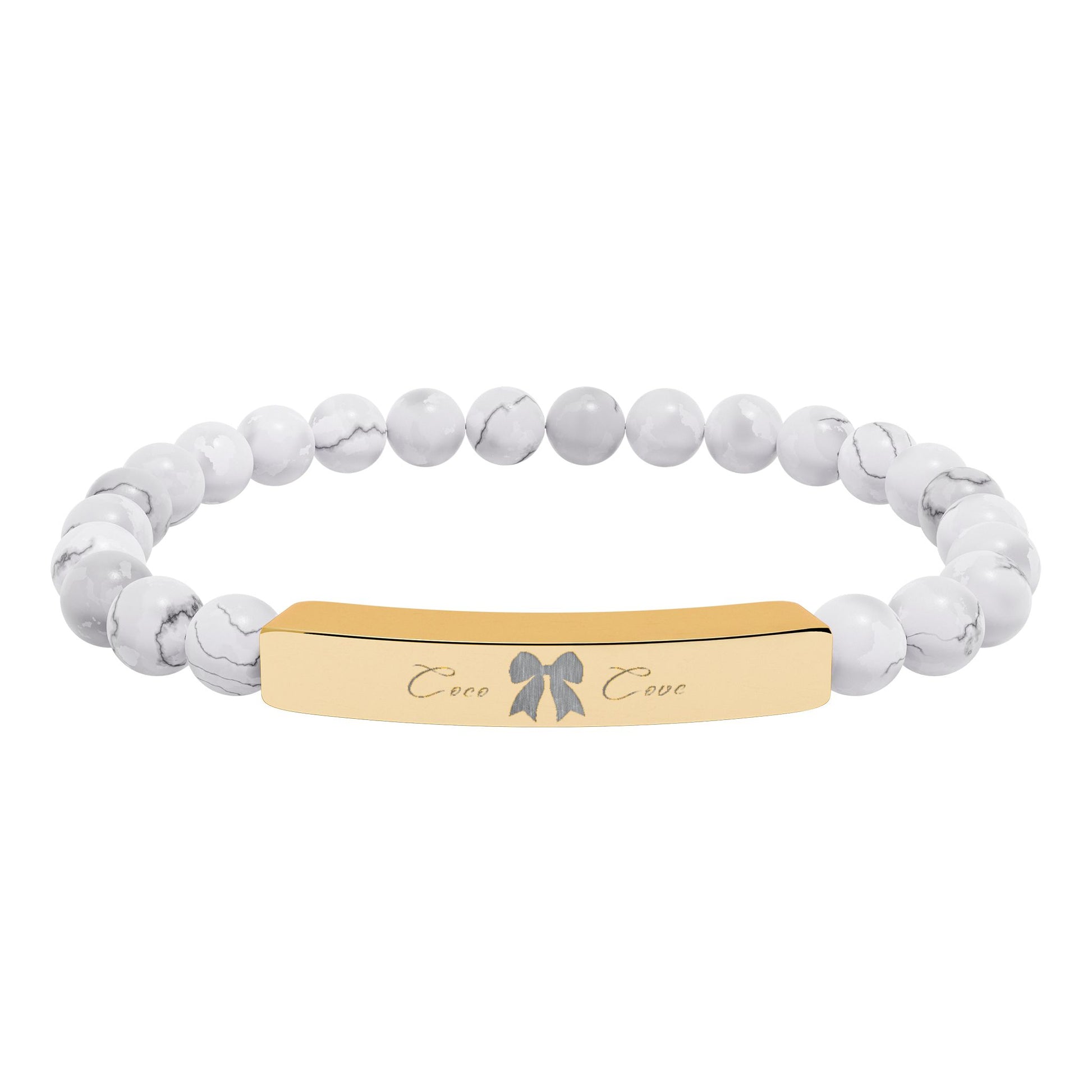 Engravable Natural Stone Stretch Bar Bracelet — Personalized Beaded Wristband
