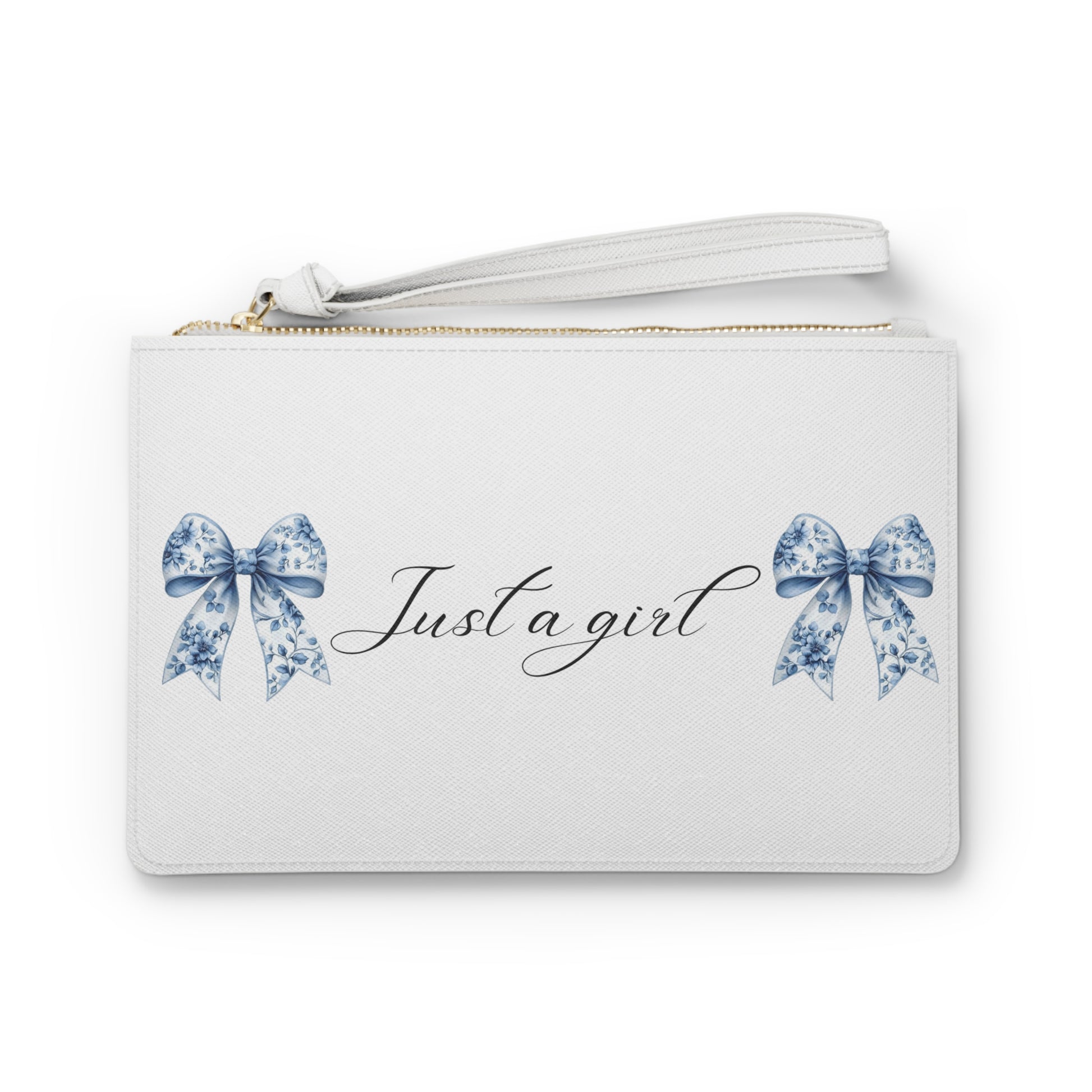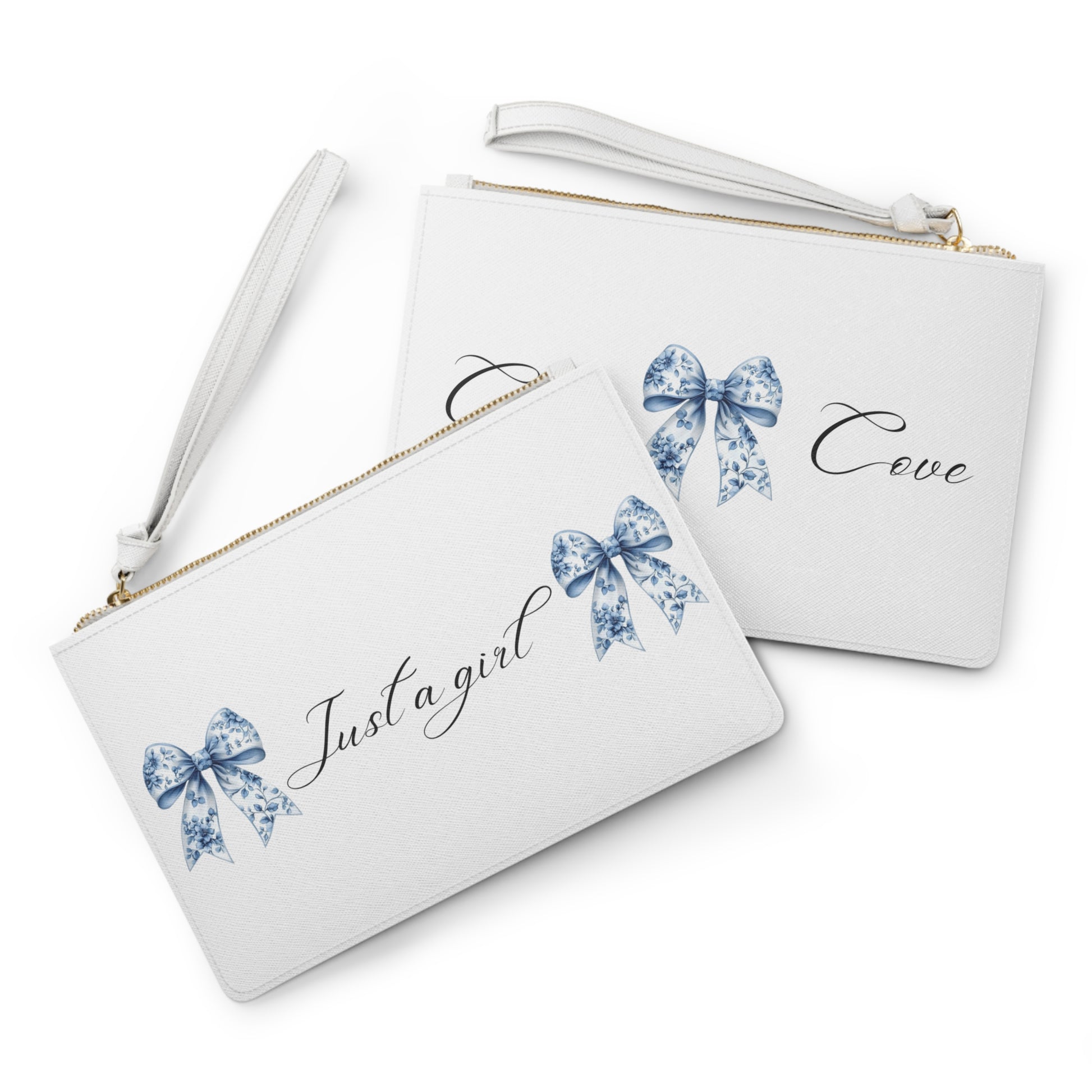 Just a Girl Blue Bow Clutch Bag — Feminine Wristlet Purse